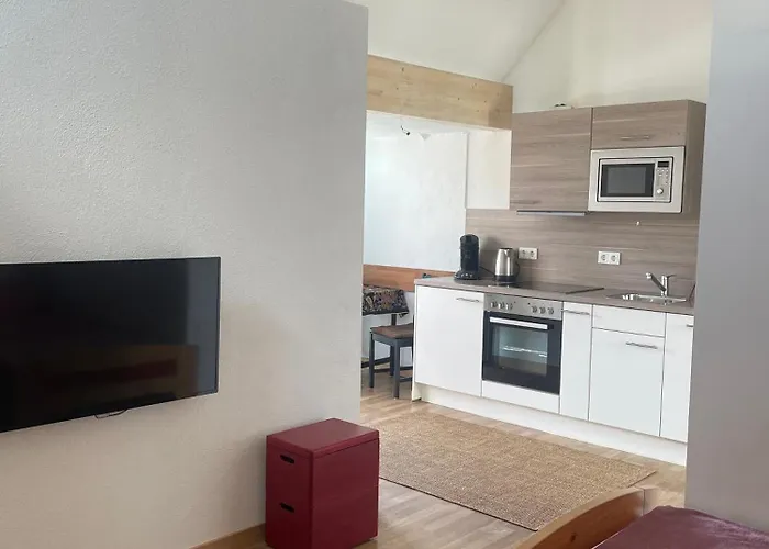 Při pobytu v apartmánu Apartmán Haus Hauptstrasse 23A hosté mohou relaxovat na terase a užít si 11-minutovou procházku k Kloster Maria Hilf.